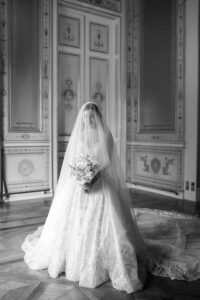 Complemented by a long, ethereal veil, Elona’s bridal look was the embodiment of modern royalty—perfectly in harmony with the opulence of the Shangri la Paris. As a Paris wedding photographer, moments like this are pure gold: the interplay between couture fashion, historic architecture, and raw emotion creates images that feel cinematic and timeless. When Elona made her entrance into the ceremony room, time seemed to stand still. A hush fell over the guests, breaths were held, and eyes glistened with tears. It was one of those rare, electric moments when beauty and emotion align perfectly—a defining memory of this Paris luxury wedding.