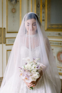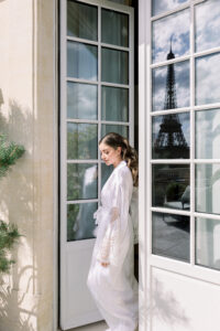 I recommend booking a suite with a view of the Eiffel Tower. This gives you a beautiful, intimate space to get ready, along with a breathtaking view to capture your very first bridal portraits. Please note that during the day, the sun can be quite strong on the Shangri-La terraces, resulting in high-contrast images. If you’re looking for a softer, more delicate look, it’s best to return to the suite between the end of the cocktail hour and the beginning of the evening, around sunset.