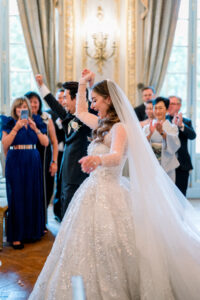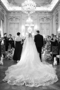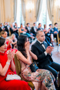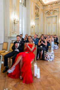 This terrace interlude was more than just a photo opportunity; it was a shared breath of happiness, a pause to savor the beauty of the moment. Guests mingled, took in the view, and reveled in the magic of being together in one of the most romantic cities in the world. The Shangri la Paris once again proved why it is such a coveted venue for a Paris wedding, offering not only luxurious interiors but also outdoor spaces that capture the soul of Paris itself.