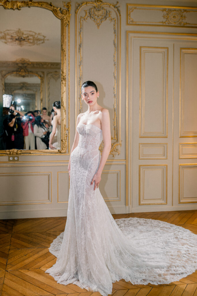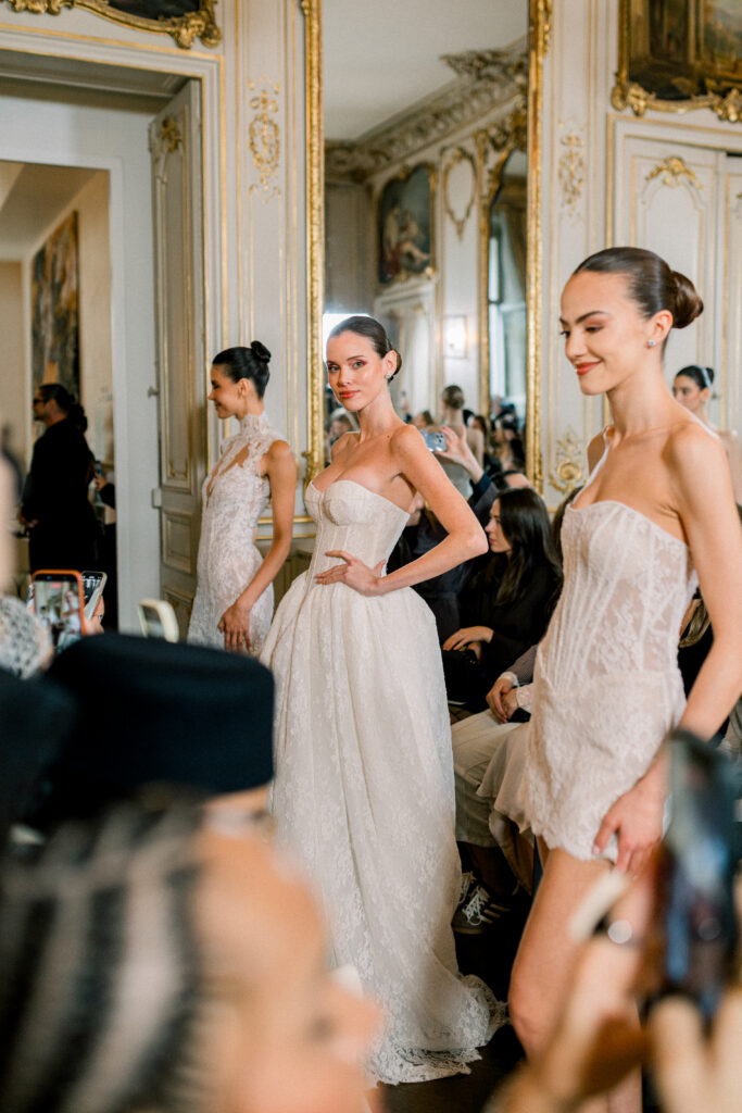 Dozens of photojournalists lined the room, their flashes punctuating each passage of the models. Editors, designers, creatives — the entire world of high-end bridal fashion seemed to converge in this singular moment.